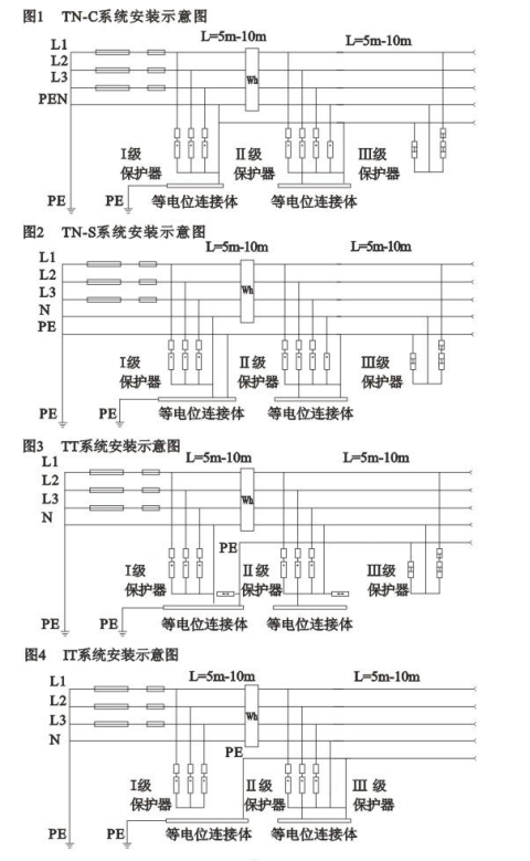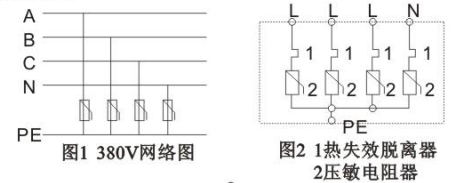 1.1  電涌保護(hù)器(以下簡(jiǎn)稱“保護(hù)器” )適用于交流50/60HZ、380V以下的TT、IT、TN-S、TN-C、TN-C-S等供電系統(tǒng),對(duì)電網(wǎng)因雷擊或浪涌過(guò)電壓進(jìn)行保護(hù)。